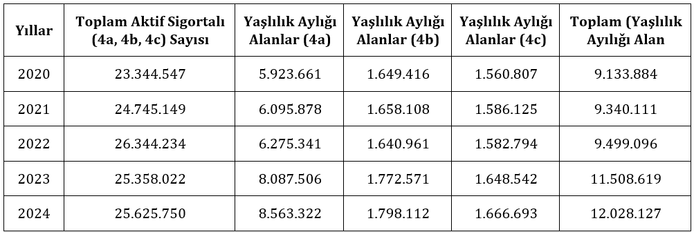 Emeklilikte Yaşa Takılanlar (EYT) ile ilgili düzenlemenin 03.03.2023 tarihinde yürürlüğe girmesiyle halihazırda emekli olanlara yeni emeklilerin eklenmesi neticesinde sosyal güvenlik sistemindeki aktif/pasif dengesi zarar görmüştür. Aktif/pasif oranı 2024 yılı itibariyle 1,61’e gerilemiş durumdadır. Öyle ki ülkemizdeki 21 ilde emekli sayısı, sigortalı olarak çalışanların sayısını geçmiştir. Çalışma hayatında yer alan bireylerin bir kısmının erken sayılabilecek yaşlarda emekli nüfusuna dahil olmaları sosyal güvenlik primlerinin azalmasına neden olmaktadır.